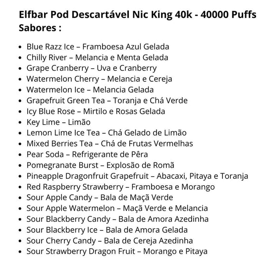 Elfbar Pod Descartável Nic King 40k - 40000 Puffs
