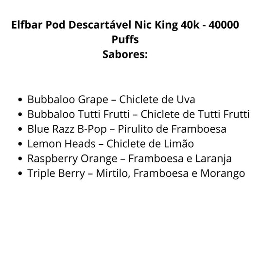 Elfbar Pod Descartável Nic King 40k - 40000 Puffs