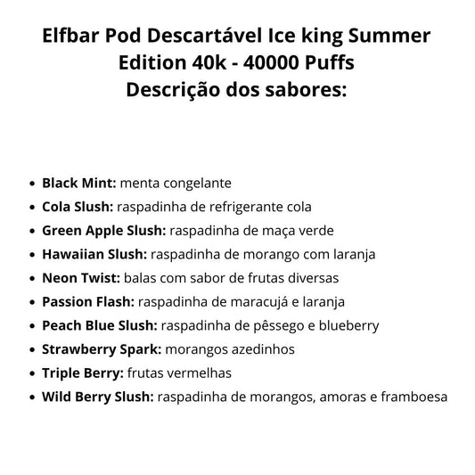Elfbar Pod Descartável Ice king Summer Edition 40k - 40000 Puffs